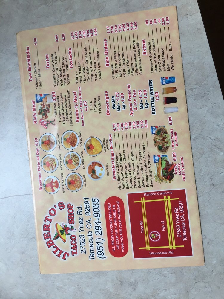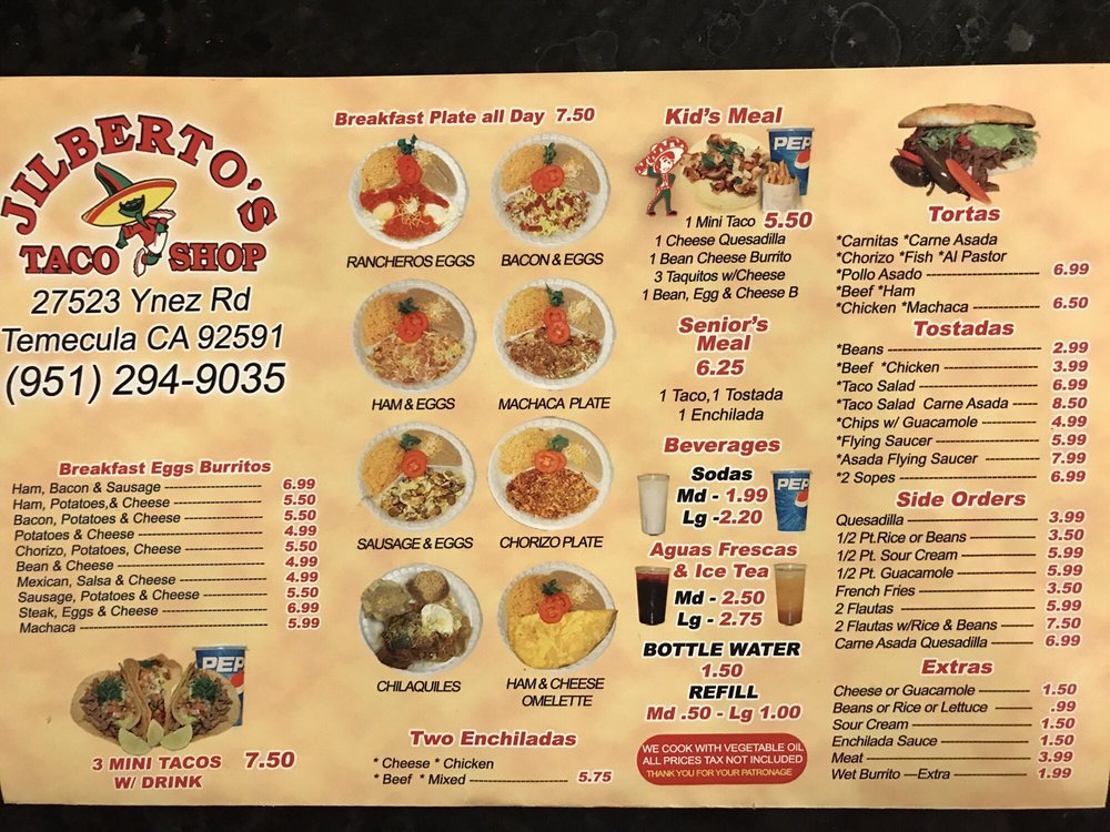 Jilberto's Taco Shop Temecula Menu (Update 2025)